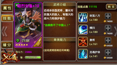 3. 激将:命令一名生命最虚弱的友军死战不退,获得一段时间的不屈效果。