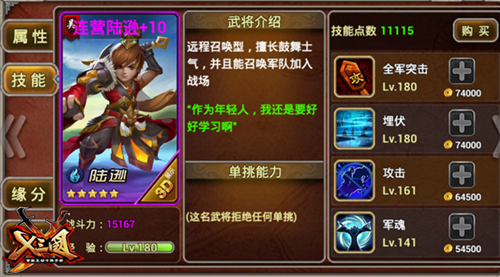 4. 军魂:连营陆逊在场时,所有队友的生命值获得提升。