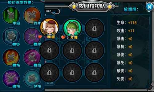 当你与校花的浪漫值到达一定阶段,即可触发校花与你展开【合体】。小朋友们可不要想污哦,这里的【合体】功能指的是这些美女校花将化身玩家啦啦队,为玩家助拳添属性。