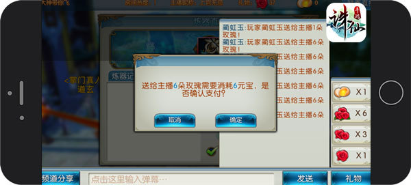 图7:《诛仙手游》直播互动 鸡蛋鲜花随便砸