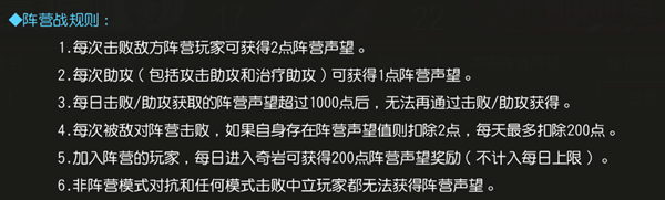 阵营战有个前提,就是一定要切换阵营模式,不然是没有声望获取的。也就是说,击败没有开启阵营模式的玩家和中立玩家,是不会获得声望的。