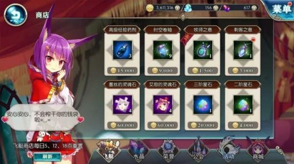 公会商店:这里可以购买到体力,由于等级达到40级才能装备六星星石,所以等级成长是王道。公会商店就是买体力的最佳地点了。