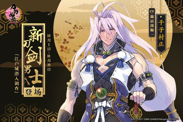 《刀剑乱舞-ONLINE-》给你一个硕果累累的十月!本月,新活动继续呈上,重磅新刀剑男士上线——审神者期盼已久的千子村正终于登场!快去【江户城潜入调查】活动中杀敌通关,获取丰厚奖励,入手美艳的新刀剑男士【打刀·千子村正】吧!时间有限,审神者不要错过哦!