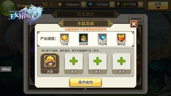 每个地方财宝的产出速度都不同,如果你选择富有的水晶龙城,你将获得200%的财宝产出速度。并且你可以邀请多位勇士与你组队冒险,每入驻一名玩家,房主金币、骑士升级道具产出就会增加20%。邀请好友帮你搜集,瞬间拥有大量的金银财宝岂不美滋滋?
