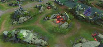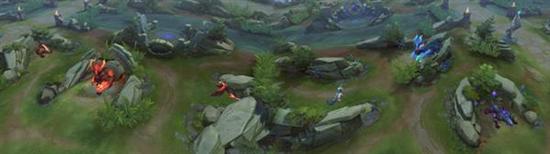 红蓝野区:“远古魔道生物”和“机关巨人”在大战后,双双倒在了峡谷中,峡谷的野区里既会有“机关巨人”的遗骸掉落在“机关野区”(蓝方野区)的各处,也会有封存着“远古魔道生物”残余魂魄的舍利球散落到“魔道野区”(红方野区)的角落。