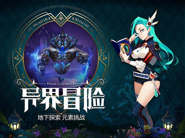 《最终契约》是奥飞游戏2017最新推出的一款超欧气RPG手游。游戏以西方创世纪为故事背景,收录了大天使、恶魔、圣骑士、亡灵骑士、独角兽、魅魔等近百位经典魔幻角色。玩家将扮演掌握契约魔法的精灵贵族,召唤远古英灵对抗邪恶势力。庞大的英灵图鉴随心收集,无尽的战术可能等你探索,更有深邃奇幻的背景音乐与魔兽原班团队的角色配音,给你最纯粹的魔幻冒险体验!