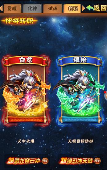 继第一波橙将转职之后,赵云、张角等8名橙色武将也开放了转职系统。武将达到一定等级之后即可开启不同的强力转职技能和天赋属性,玩家可根据自己的阵容随意搭配。