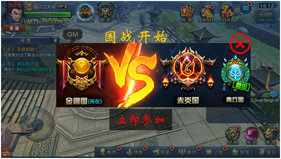 在《大圣之怒》中,同样为玩家提供了热血的“国战”玩法。三大妖国对峙争霸延伸出的国战、日常任务、国家建设等玩法具有很强的交互性,也能够让玩家产生很真实的代入感。为什么这么说?国王、王后等不同的官职使得玩家有一种竞争的意识,而强国与两大弱国间开启的万人国战更是能够令人感受到开团秒杀的竞技快感和集体荣誉感。在公测版本中,国家系统更加完善,加入了国家建设的玩法。玩家通过完成刺探、放火等日常任务获得贡献值,并打造红色神装。