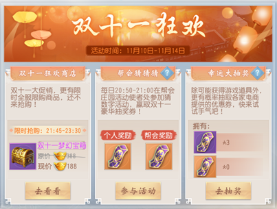 又是一年“剁手季”,铺天盖地的促销信息向好战玩家们预示着,这场没有硝烟的战争早已拉开了帷幕。推着满满当当的购物车、享受着“买买买”的全民血拼剁手快感,《大唐无双》唯美篇也将开启一波双十一狂欢活动,海量真金白银大放送,让福利风暴来的更加猛烈。据悉,本次双十一活动将有大量玩家们最感兴趣的折扣限时抢购商品亮相,让所有无双世界的群英们,共飨《大唐无双》唯美篇这场全民福利饕餮盛宴。