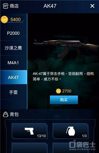 打死僵尸后会获得金币,金币积累到一定数量就可以在商店购买武器。目前的武器种类有P2000半自动手枪、沙漠之鹰手枪、AK47突击步枪、手雷、M4A1卡宾枪等,都是非常经典的知名武器。
