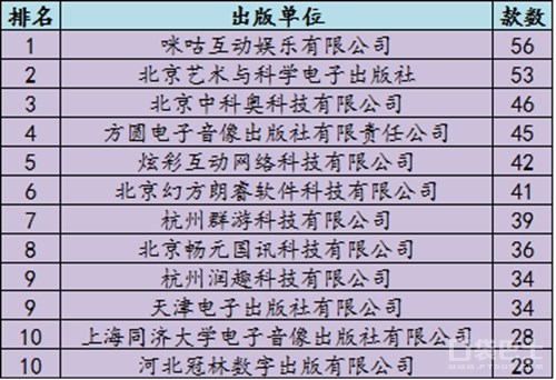 3月一共有89家出版单位拿到手游版号,其中进入过审手游数量TOP10榜单的有12家。咪咕互娱继2月首次登顶出版单位榜单后,3月成功卫冕,不过领先优势略有缩小,仅比排在第2的北京艺科多出3款。另一家运营商平台炫彩互动排名第5,与2月持平。12家出版单位中,仅有方圆电子音像出版社和天津电子出版社两家新上榜,格局较稳定。