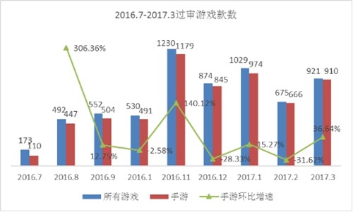 3月共有921款国产游戏获得版号,其中手游数量为910款,在2月审批速度低谷之后,3月过审手游数量环比增速达36.64%。截至3月底,获得版号的手游数量约有7000款。按照这样的审批速度,今年上半年,获得版号的手游数量有望突破五位数。