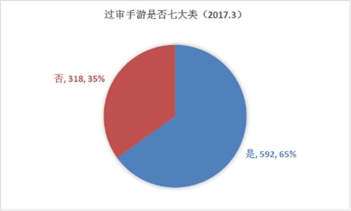 相较于往月,3月份过审的七大类手游数量占比大幅降低,2月为74%,3月仅有65%。出现这样的情况,或许有三个方面的原因:一是总局对棋牌类游戏审核政策有所收紧,而棋牌向来是七大类中占比最高的类型;二是作为审核难度相对较低的类型,此前已有大量七大类存量产品获得版号,占比逐渐下滑也在情理之中;三是市场精品化逻辑的影响,导致普通七大类产品数量缩减而品质逐渐提升。笔者注意到,3月过审手游中,出现了《寻光》、《疯狂大派对》等知名独立游戏。