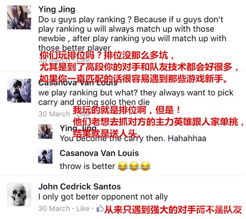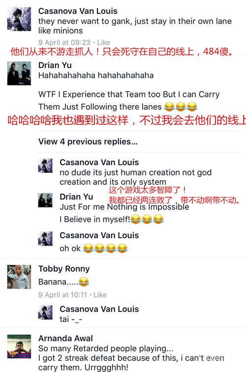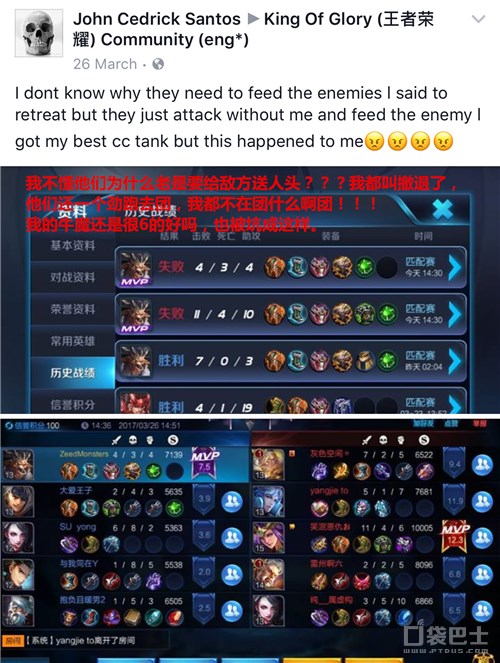 翻译:我不懂他们为什么老是要给敌方送人头???我都叫撤退了,他们还一个劲跑去团,我都不在团什么啊团!!!我的牛魔还是很6的好吗,也被坑成这样。