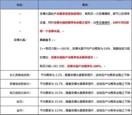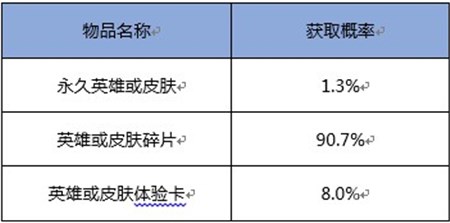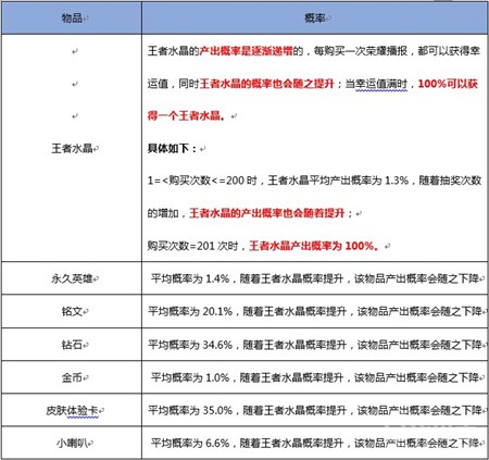 A “点券买荣耀播报”中,物品产出概率公布如下: