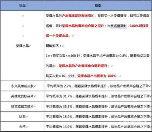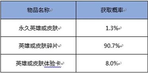 A “点券买荣耀播报”中,物品产出概率公布如下: