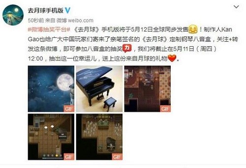 而在经过了多次跳票后,今天这款游戏的国内发行方终于在官微上公布消息:《去月球》将于5月12日全球同步发售。而游戏也将保持从Steam平台延续至今的“优良传统”,将会为游戏中大量的文字内容配备简体中文翻译,尽量保证广大国区玩家能够体验到原汁原味的游戏剧情。