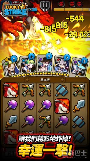 由韩国开发商超级奥森(SuperAwesome)制作的新作《幸运一击》于近日在手机移动平台上正式推出,据悉,该作采用了下载免费、道具收费的营运模式,玩法启发自吃角子老虎机,在装备配置、队伍组成、属性相克、躲避陷阱等方面均需玩家运用合理策略方可过关。