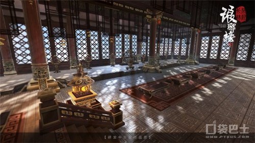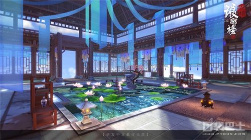 除此之外,游戏在对场景的刻画上也力求再现同样精致的剧中世界,让各位玩家粉丝们能够更好地融入到游戏的山水草木之中。五步一楼,十步一阁,渲染着正好色漆的大门顶端悬着黑色金丝楠木匾额,天阶夜色凉如水,窗外细雨横斜,积水顺着屋檐悄然滴落,在地面晕开一圈涟漪。