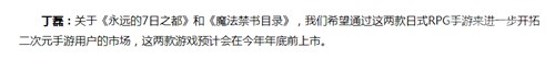 据悉,今日(8月10日)上午网易宣布了截止至2017年6月30日的2017财报。并在财报发布之后,网易CEO丁磊及CFO杨朝轩等公司高管出席了财报电话会议,在会议中,丁磊表示网易旗下的两款日式RPG手游《永远的7日之都》和《魔法禁书目录》预计将在今年年底前上市。