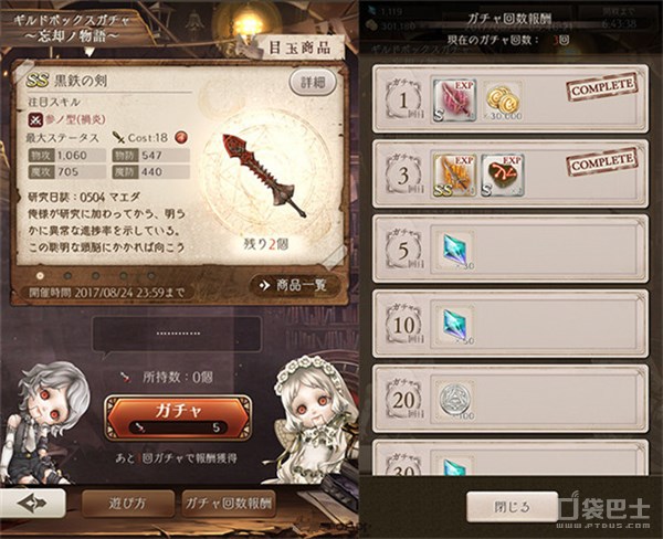 该转蛋有机会获取 SS 武器(黑铁系列)等,通过达成转蛋成就,还可以领取魔晶石、金币、素材作为奖励。