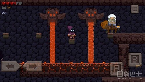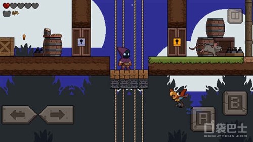 游戏整体风格偏向早期FC上的横版游戏,总共只有四个操作键。屏幕左边的左右按键控制角色行走,屏幕右边的AB两个按键分别控制角色的跳跃与攻击。为了降低玩家误触按键的几率,设计者还特意将AB两个按键放置在了不同的高度。