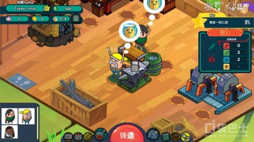游戏的玩法其实很简单,和大多数的经营游戏很相似,雇佣土豆铁匠,让他们在合适的位置上打造武器,相应的属性便不断提升,随着工匠能力的提高,提升的数值也会变多。在打造期间还能邀请自家或他家的工匠进行一次数值强化,加上成品后的附魔加工,数值很容易爆炸。打造完成后还能给武器取名。