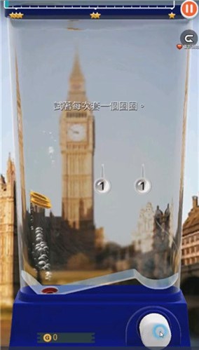 很怀旧,游戏画面很清爽简洁,套环的玩法也很多样,还有倒着套环的。左右倾斜手机,可以调整圆环的位置,很逼真!在设定上,地图是环游世界,可以看到世界各个地方的著名城市,还能积攒道具、收集物品然后给主角妹子换装。