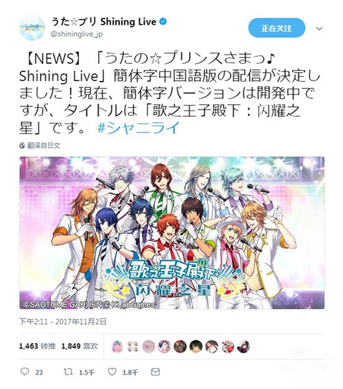 这下安利《歌之王子殿下shining live》没有语言障碍了,不过不知道到时搭载简体中文的游戏是上架中国区iOS的App Store还是仍然需要到日区App Store下载?运营是否需要国内代理?