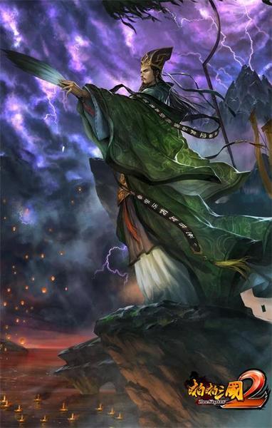 《啪啪三国2》的诸葛亮原画是以角线及大比例透视设计,加全景广角精细构图,超强冲击力营造真实氛围战场,角色刻画生动富裕灵魂与个性设计,动势配合场景设计传达出赤壁开展之际,营造出故事感,添加闪电特效绘制增强战场氛围,色彩设计运用冷暖颜色搭配主次分明,服装颜色设计以绿色为主为蜀国独有颜色属性设计,通过真实光影计算刻画出超强体积感。