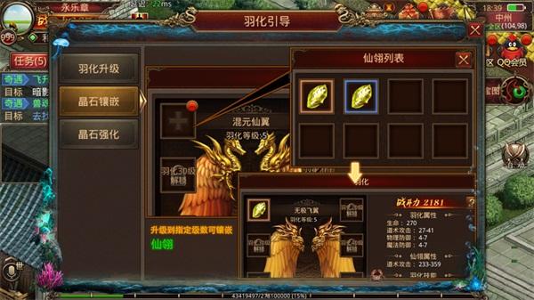 晶石镶嵌玩法和羽化技能并不一样,羽化技能玩法是针对仙翼的基础属性!仙翼羽化达到5级后,会开启第一个血脉晶石镶嵌槽,可以镶嵌血脉晶石。玩家在镶嵌血脉晶石后,会获得晶石属性。晶石后续还可以强化升级,提高属性加成。本次更新后,仙翼幻形界面中增加了新的仙翼造型,其中的幻形属性,也能带来属性上的提升。
