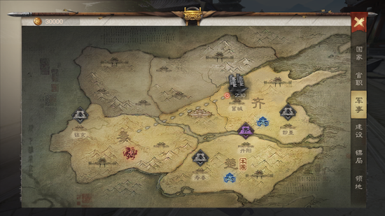 游戏目前开放了五个职业,相较于之前多了一个,每个职业定位明确,互相弥补。墨家墨弓对应弓箭手(远程物理输出)、兵家破军对应战士(近战坦克)、纵横家鬼谷对应刺客(近战爆发输出)、医家素心对应医生(恢复辅助),还有新职业儒家兵谋对应法师(远程法术伤害)。这五个职业都是经典配置,在本作中展现的玩法也是特色鲜明,为后期的国战职业搭配提供了坚实的基础。进入游戏后,玩家除了选择一个职业,还需要选择一个国家效忠,目前已经开放了秦、齐、楚三国。