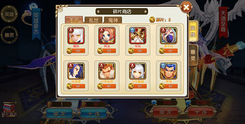 此外,在《吞天记》的“英雄招募”玩法之中,如果道友们没办法通过招募来获得自己想要的英雄,可以在招募玩法的碎片商店里面使用足够数量的“万能英雄碎片”这一道具来兑换特定的英雄。