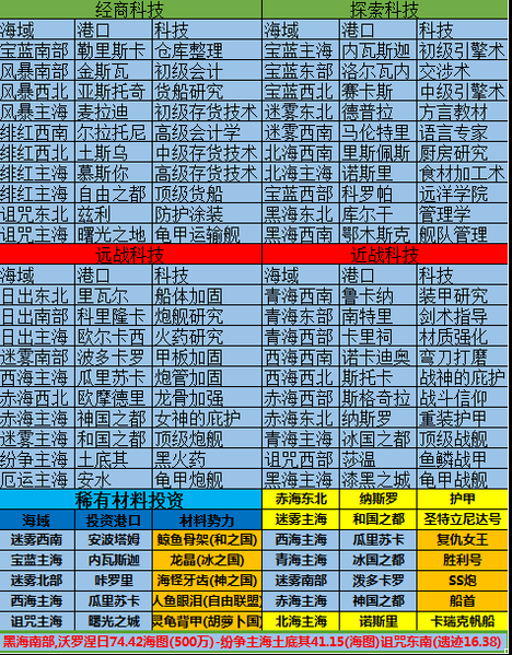 下面是不同科技在不同港口的学习线路图,这可是老玩家呕心沥血之作。