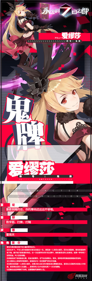 《永远的7日之都》新角色“鬼牌”爱缪莎揭秘,以上就是xiaohei游戏小编小A为您带来的详细介绍!
