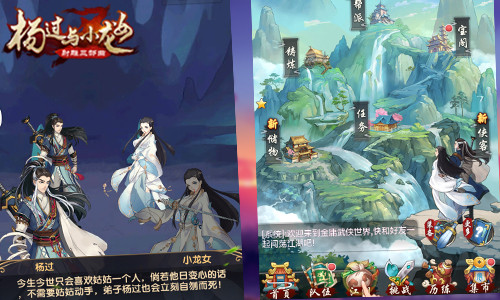 除了名门正派的的一阳指、打狗棍法、降龙十八掌等威力迅猛的武功之外,更能修炼杨过因思念姑姑而创出的“黯然销魂掌”以及小龙女在古墓中潜心修炼的“玉女剑法”等新派武功,更可拜师学艺求得不出世的秘籍一窥,当然这便是要搭配休闲玩法给师傅送礼,方能获得了!