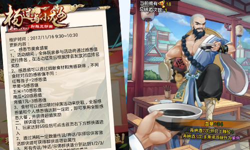宴请天下英雄的事不仅郭靖黄蓉做过,少侠何不在《杨过与小龙女》中也宴请一遭?感恩节即将来袭,在近期的更新中,官方将推出诸多感恩节福利,于上周首先开启的便是“感恩节美食盛宴”,玩家可参与活动收集各种“食材”并兑换感恩值,达到一定数值后即可获得超值奖励!