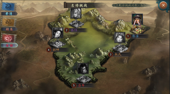 2)名将副本共有5个难度,在依次全部通关之后,玩家可选择任意难度进行挑战;