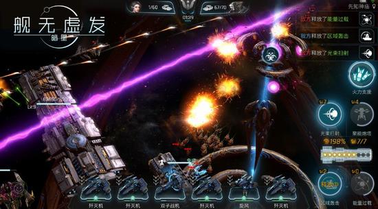 如果说全球匹配实现了功能上的突破,那么游戏在画面上的精雕细琢则展现了足够媲美端游的影音表现。闪耀的明星、划过的陨石,再搭配上战火风飞的场面,以及真实的爆炸特效,能够带来好莱坞电影般的冲击力。每个主舰、护卫舰及作战单位都经过精心设计,拥有完整而独特的各种动效。