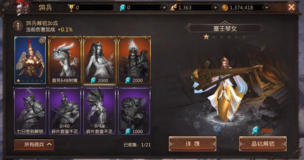 佣兵养成系统加入。每个解锁的佣兵可以给主角增加属性,佣兵和佣兵技能也可以进行培养。更强的助战佣兵端看你的培养方式,助你更添神威!