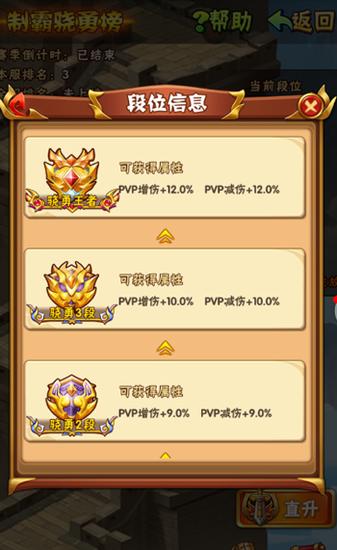 此外,跨服竞技pvp玩法“制霸骁勇榜”于今日正式开启,玩家将与排行榜中的玩家进行1V1对抗,并争夺日常PVP最强榜单——“骁勇王者”榜中的排名,与全服实力TOP200的玩家进行比拼,赢取包含安魂石、海量元宝在内的段位升级奖励、每日结算奖励和赛季奖励。