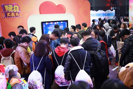在主舞台下,无数玩家也聚集在《玩具大乱斗》互动区,下载游戏,和好友来一场双人组队赛或是擂台赛,近距离感受游戏魅力所在!