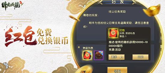 《卧虎藏龙贰》为各位少侠准备了五重节日红包活动。活动期间,只要你上线参与完成双12专属结义任务、轻松答题、古城夺宝和元宝转盘等活动中来,不仅有白哗哗的经验,重磅红包好礼更是唾手可得。另外,全新上线“双12红花令”活动,击杀神秘帮会杀手也将额外获得红包一份!一大批礼包将会等待着各位领取!