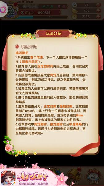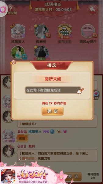 当游戏房间达到6人并全部准备就绪时,游戏即可开始,每局时长8分钟。至于成语接龙的游戏规则相信已经不必赘述,饱读诗书的各位小主们必定已经了然于心啦。