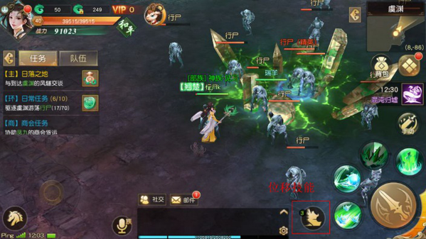 游戏中每个职业都拥有其不同的6个主动技能,其中包含了5个被动技能。游戏操作界面右侧只能放置4个技能,玩家需要从中选取进行战斗。众所周知,PVP战斗中,走位的重要性不言而喻,基于此《莽荒天下》还为玩家提供了3段位移技能,冷却时间大约在5秒左右,这一设计更是让玩家将战斗过程牢牢抓住在自己手里。