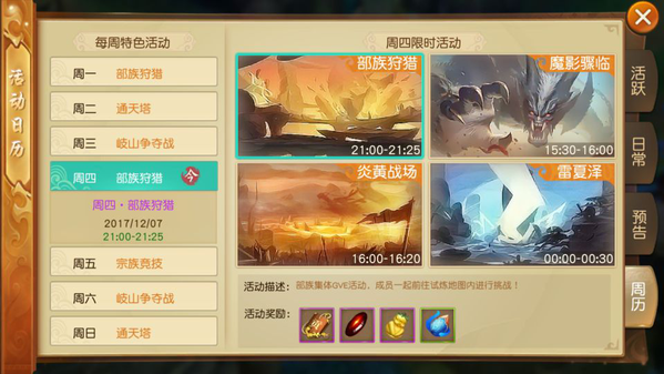《莽荒天下》玩法颇为多样,在经过酣畅淋漓的战斗之后,玩家可以参与游戏内提供的各种活动。除了野外修炼、部族传功、商会任务、凶地试炼等日常活动外,每日还为玩家设置了包括宗族竞技、魔影骤临等限时活动,通过这些活动玩家则可大大提升战力。另外,每周还有不同的特色活动,玩家可以在通天塔、大荒榜、岐山争夺战玩法中一较高下。这些玩法都能为玩家提供大量的奖励以及资源。