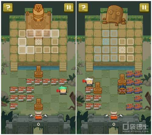 本作第一眼看上去像贪吃蛇,其实实际体验又有点一笔画的感觉,游戏主要玩法是通过滑动控制领队前进,后面的族人会跟随领队的脚步,通关需要所有人在对应位置摆成相应的形状,步数没有要求,不过常玩这种游戏的玩家应该多少有点强迫症,比如我,还是希望步数越少越好,一次失败就必须重新开始……