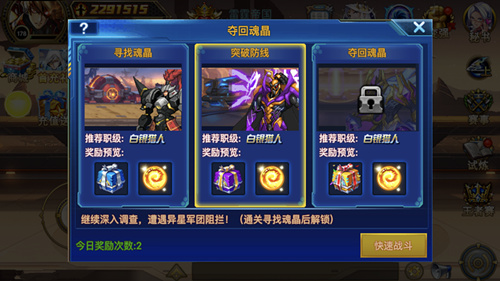 时空裂缝将在每天的8:00-23:00整点开启,开启后帝国魂晶即会出现,每次持续15分钟,在采集帝国魂晶的同时,要小心那些觊觎魂晶的异星怪物哦。击败异星怪物可获得丰富的提战材料。除此外,时空裂缝中还会出现核心魂晶,全服只可采集30次。