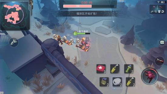 演习模式虽然是经典的团队竞技大逃杀模式,也就是通过收集各种武器用尽各种办法活到最后;但是因为游戏的2.5D锁定视角和类MOBA操作模式,让游戏玩起来头不晕了,眼不花了,杀起敌人也更带劲了。