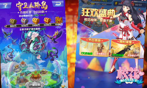 人气校花齐聚,时值双十二福利期,游戏开启“守卫天阶岛”玩法,兽潮来袭、全民防御,激战就在此时!十二狂欢盛典活动更在火热持续,抢购狂欢、砸金蛋的活动福利满满,就等各界高手携手共战了!